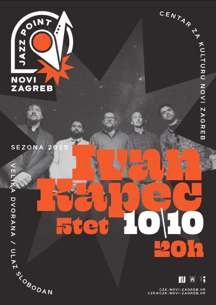 Ivan Kapec 5tet uz Ivana još čine Mario Bočić (saksofon), Šimun Matišić (vibrafon), Hrvoje Kralj (kontrabas) i Borko Rupena (bubanj). Dečki će predstaviti svoj najnoviji album “Interlocari” koji je proglašen najboljim hrvatskim jazz albumom 2024. godine u godišnjem pregledu Jutarnjeg lista. Nesvakidašnje je to glazbeno putovanje inspirirano astronomskim djelom Johannesa Keplera “Mysterium Cosmographicum”.