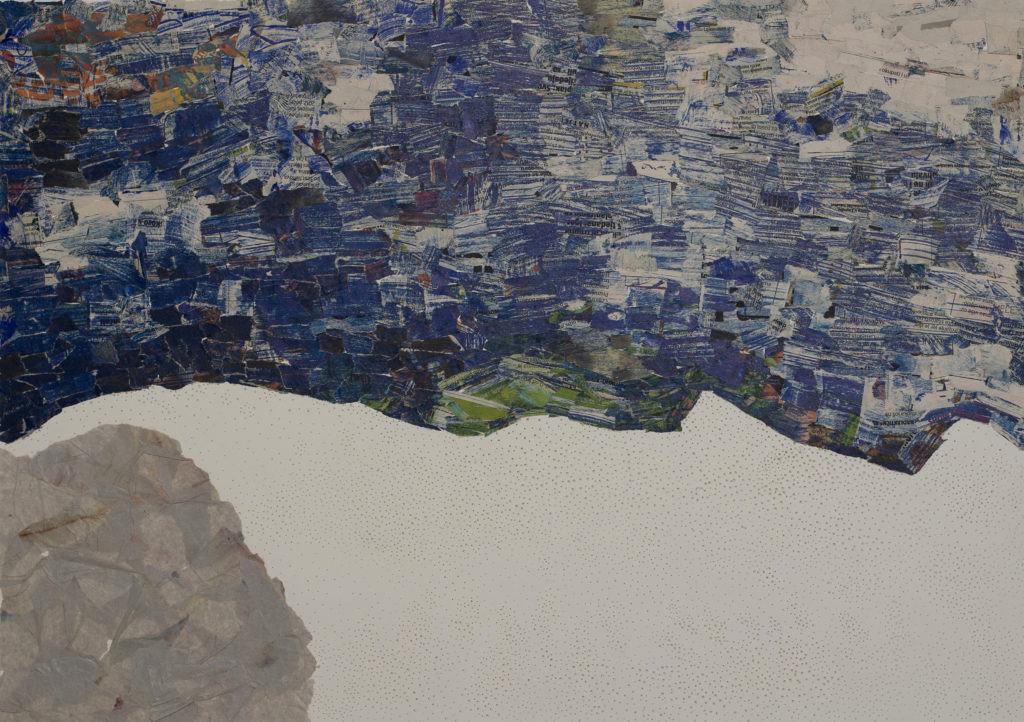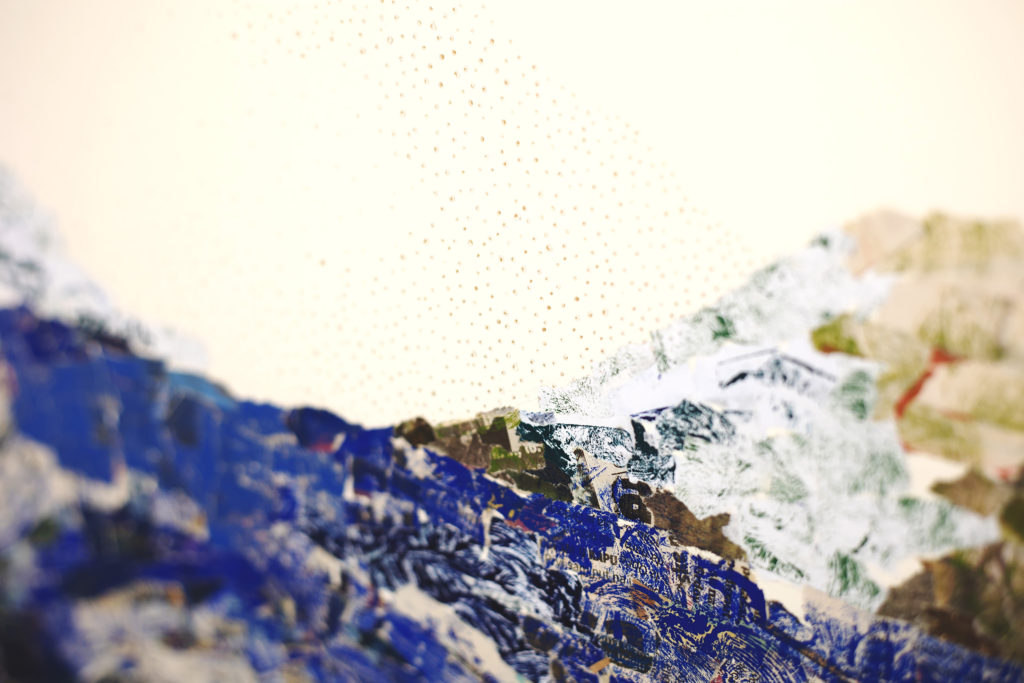 Ciklus radova “Moja Rijeka” nastala je kroz 2023. godinu. Diplomirala sam 2013. godine i vratila se u Varaždin te sam za desetu godišnjicu od diplome odlučila napraviti radove koji izražavaju emociju, sjećanje, energiju. S četiri kolegice sam 2018. godine napravila izložbu naziva “Hommage Rijeci” u kojoj sam radila tehniku suhe igle. Papire s kojima sam skidala prvi sloj grafičke boje sam posušila i sačuvala te sam ih koristila u ciklusu “Moja Rijeka”. Te iste papire različitih tonova plave, zelene i srebrne boje sam trgala te slagala u različite kompozicije te napravila kolaž. Kroz radove se protežu i perforacije točkicama rađene grafičkom iglom tvore koje tvore teksture. Grafika, kao primarni medij u kojem se inače izražavam se u novim radovima pojavljuje kao metafora kroz monotipiju na novinskim papirima i preko grafičke igle koju koristim kao alat. Tijekom tog procesa razmišljam o radovima, ali i o sebi. Gradim sliku, a pritom gradim i sebe.