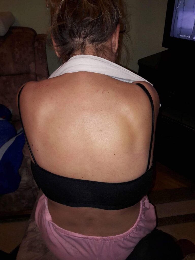 Moj prvi napadaj završio je operacijom slijepog crijeva. 50% osoba oboljelih od HAE operiralo je slijepo crijevo jer napadaj u trbuhu izgleda kao upala slijepog crijeva. Tada nisam obraćala pažnju na to jer sam razmišljala ni prva ni zadnja…Nakon drugog poroda koji je bio 2001. godine carskim rezom počele su se pojavljivati oticanja, gušenja i bolovi u trbuhu.