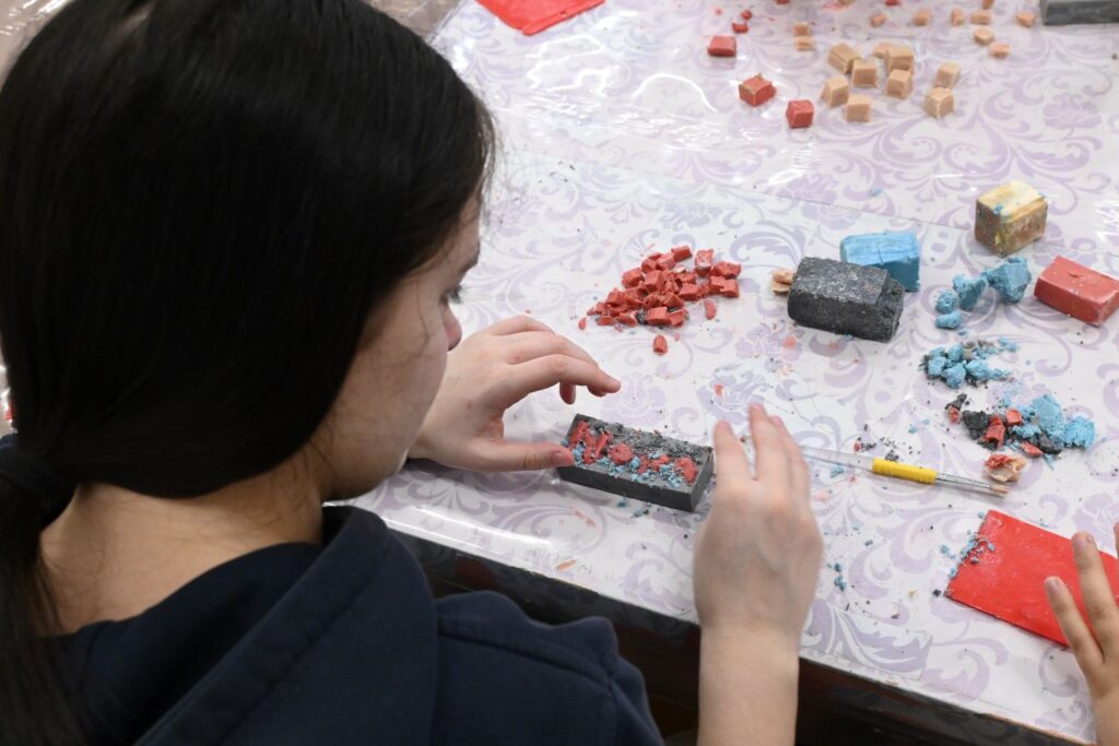 Djeca su se upoznala s likovnom tehnikom mozaika. U jutarnjoj radionici djeca i mladi savladavali su rezanje i oblikovanje sapuna u male kockice te slaganje šarenih „sličica“ na manjem sapunu. Popodnevna radionica uključivala je izradu većeg mozaika kroz grupni rad. Na kraju su nastali šareni, kreativni sapuni i veći mozaici koji su podsjećali na šarene slike motivima ljubavi i prirode.