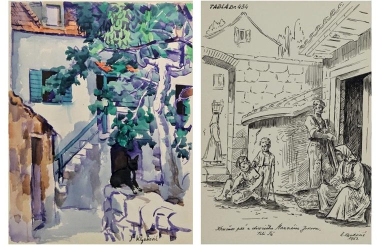 Fotografije, slike, crteži, karikature i ilustracije u knjigama daju uvid u njihove životne putove, ali i stvaralaštvo. Jozo, jedno od ključnih imena hrvatske umjetnosti prve polovice 20. stoljeća, poznat je po monumentalnim freskama i neoklasicističkom izrazu, dok je Živko razvijao dokumentaristički crtački pristup. Izložba uspoređuje njihove komplementarne poglede – Jozinu slobodnu manje ili više monumentalnu viziju koja nastaje daleko od domovine u Buenos Airesu i Rimu te Živkovu preciznu dokumentaciju, kako tijekom zbjega u El-Shattu tako i u terenskih istraživanja Instituta za narodnu umjetnost u Zagrebu.