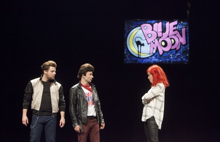 Predstava ‘Blue Moon’ humorističan je i autentičan presjek predratnog stanja promatranog iz vizure Čarlija, propalog studenta i rockabillyja koji u gradskom životu, glazbi i hedonizmu traži bijeg iz surove ličke provincije i zamršenih odnosa s ocem i djedom.
