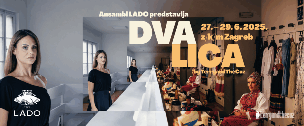 Prva dramska predstava Ansambla LADO DVA/LICA do sada je njegov najambiciozniji kazališni međunarodni projekt, nastao u suradnji s hvaljenim australsko-malezijskim kazališnim kolektivom TerryandTheCuz, poznatim po svojem progresivnom radu koji prkosi ustaljenim žanrovskim konvencijama. DVA/LICA bit će premijerno prikazana od 27. do 29. lipnja 2025. u Zagrebačkom kazalištu mladih.