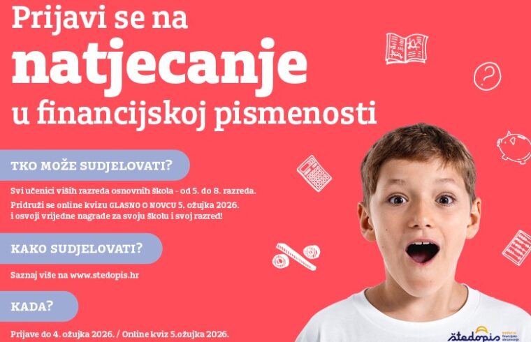 Udruga Štedopis – Institut za financijsko obrazovanje, uz podršku Addiko banke, već četvrtu godinu zaredom organizira za osnovnoškolce iz cijele Hrvatske natjecanje u financijskoj pismenosti, koje će se održati 5. ožujka 2026. godine putem online kviza Glasno o novcu. Natjecanje je namijenjeno učenicima od 5. do 8. razreda osnovnih škola, a njegov je cilj jačanje financijskih znanja i vještina potrebnih za donošenje odgovornih financijskih odluka u svakodnevnom životu.