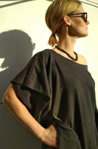 Većinom koristimo jednobojne prirodne tkanine, no poigravamo se i s određenim mješavinama, taftom ili kožom. Svaki komad je lagan za nošenje i jednostavan kako bi se osoba osjećala ugodno. Idealni su za žene svake dobi, kao i za trudnice koje se prvenstveno moraju osjećati dobro u svojoj koži.