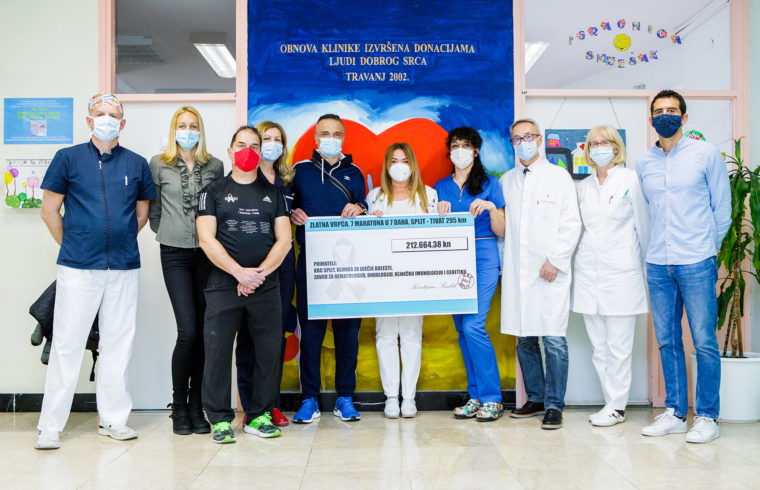 Humanitarnom akcijom “Zlatna vrpca – 7 maratona u 7 dana” prikupljeno je 212.664 kuna za Odjel dječje onkologije KBC Split, izvijestili su organizatori.