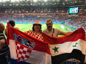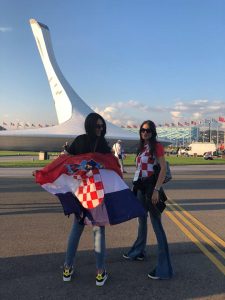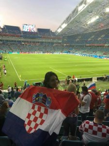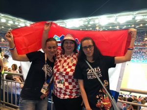„Upoznala sam jednog našeg čovjeka iz Kanade i njegovog sina, ali još važnije u zračnoj luci u Istanbulu sam srela svoje susjede, pa smo se zajedno uputili do smještaja u Rostovu. Na dan utakmice srela sam ih pred Fan zonom, kao i jednog svog kolegu sa suprugom, s kojima sam provela poslijepodne te smo zajedno otišli na utakmicu“, rekla je prof. Jurišić i dodala kako na stadionu pored nje nije bilo Hrvata, ali se zato družila i naslikavala s Ruskinjama, Francuzima i jednim Sirijcem.