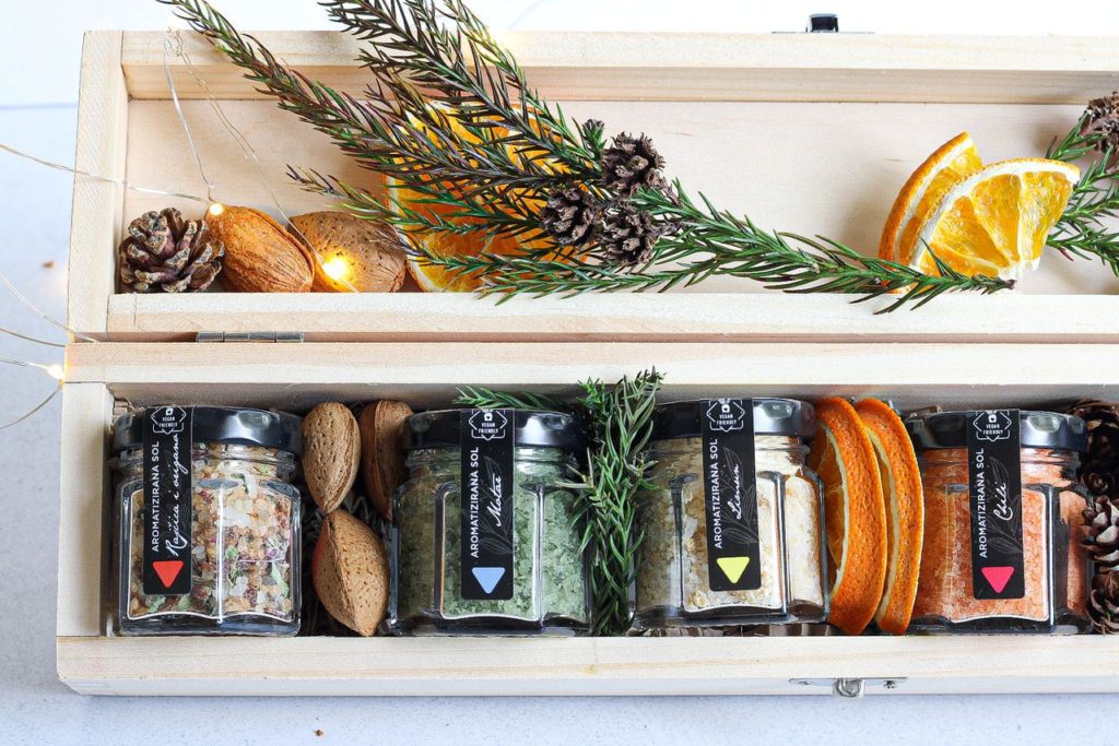 Ovi hrvatski proizvodi odlične su ideje ne samo za vaš blagdanski stol, nego i za božićne poklone za prijatelje i poslovne partnere koje Daniela s pažnjom i ljubavlju umata uz prirodne ukrase poput borovih i maslinovih grančica, sušenih naranča i ostalih ukrasa koje kombinira s kutijama i škartocima.