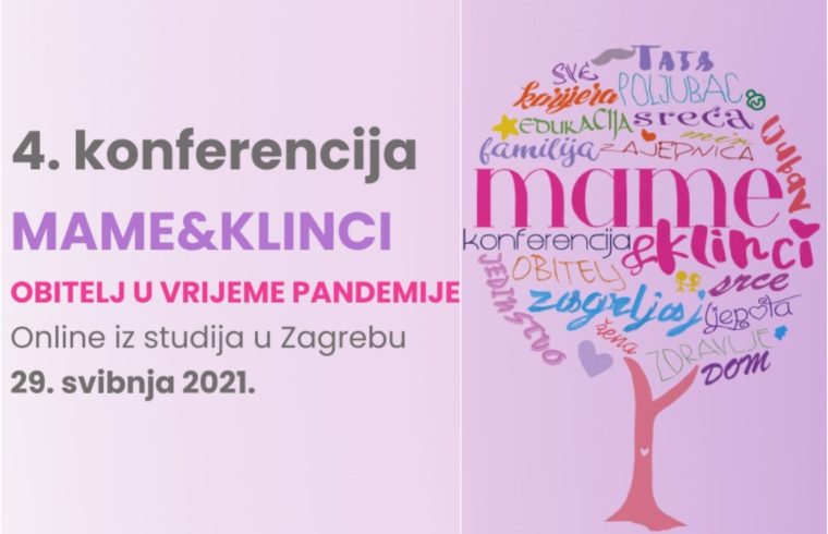 Četvrta konferencija “Mame i klinci” održati će se 29. svibnja 2021. online iz studija u Zagrebu pod pokroviteljstvom Gradskog ureda za zdravstvo Grada Zagreba. Konferencija je, najavljuje organizator, besplatna za sve sudionike.