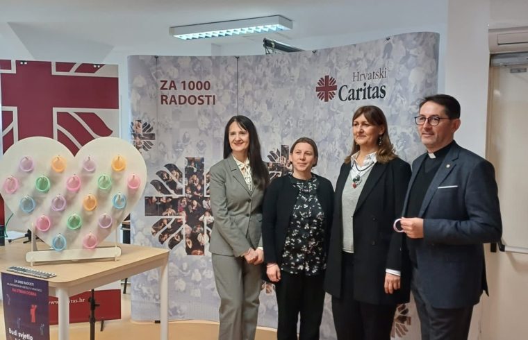 U petak 1. prosinca 2023. u Osnovnoj školi Pavleka Miškine u Zagrebu Hrvatski je Caritas predstavio svoj tradicionalni nacionalni humanitarni program „Za 1000 radosti“, koji će u narednih dvanaest mjeseci provoditi uz slogan „Na strani dobra“. Program je namijenjen senzibilizaciji hrvatske javnosti za probleme i potrebe siromašnih obitelji, prikupljanju novčanih i materijalnih sredstava kako bi im se putem Caritasove mreže moglo učinkovito pomoći i reafirmaciji temeljnih ljudskih vrijednosti zajedništva, solidarnosti i uzajamna pomaganja, kojih u ozračju Božićnih blagdana i osobno i u društvu uvijek iznova postajemo svjesni.