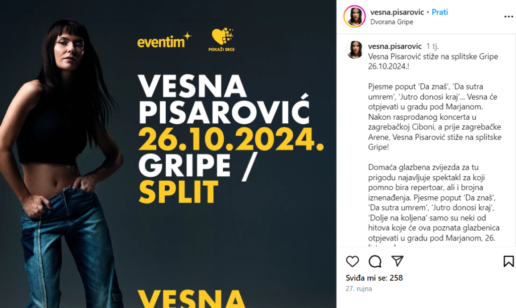 ”Nikad nisam mislila da ću pjevati na Gripama niti u Areni Zagreb, ali eto, to je valjda nešto što ti zvijezde ‘pripišu’, što je izvan tvoje kontrole, ali mogu reći da sam sretnica””, kazala je Vesna voditeljima Ines Nosić i Gordanu Vasilju.