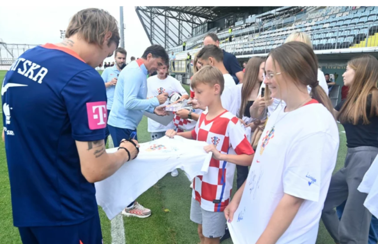 Također, potpisivali su majice, koji su mladi sportaši dobili na poklon od Hrvatskog nogometnog saveza te razmjenjivali iskustva sa sportskih terena. Bilo je tu pitanja i o sportskim tajnama i vještinama pobjedničke Hrvatske nogometne reprezentacije. U ponedjeljak navečer će pak ovi sretni mališani bodriti Vatrene na prijateljskoj utakmici protiv Sjeverne Makedonije.