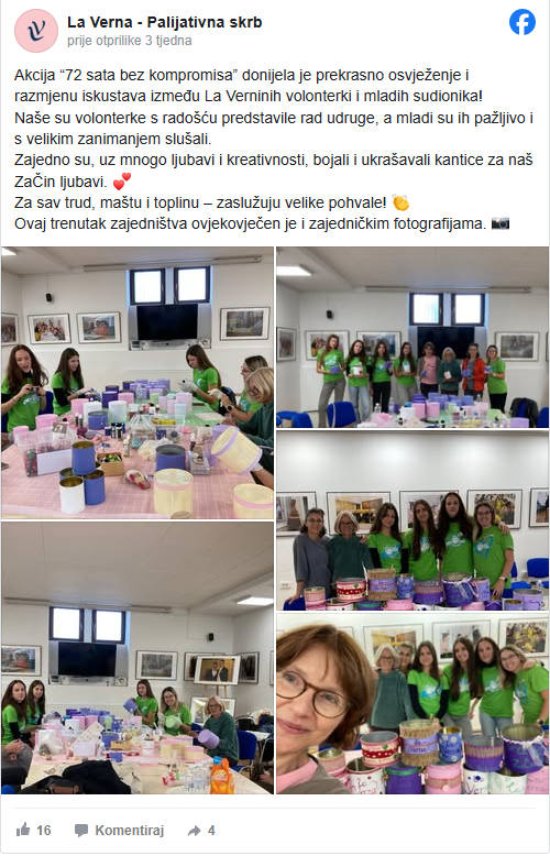 “Kao što začin jelu daje okus, tako i volonteri palijativnoj skrbi daju toplinu, ljubav i ljudskost. Palijativna skrb svojim pristupom čini društvo boljim i suosjećajnijim mjestom za život”, rekla je. Upitali smo ju u nastavku smatra li da država dovoljno radi po pitanju palijativne srkbi i kako bi se mogao poboljšati rad u tom području. “Država čini određene korake, ali smatramo da još uvijek ne prepoznaje dovoljno važnost podrške koju pružaju udruge poput naše — posebno kada govorimo o psihosocijalnoj podršci palijativnim bolesnicima i njihovim obiteljima i uključivanju volontera. Važno bi bilo da država izdvoji više sredstava za razvoj sustava palijativne skrbi te da unutar Ministarstva zdravstva postoji osoba koja bi bila zadužena isključivo za to područje. Oni koji svakodnevno rade na terenu imaju dragocjena iskustva i uvid u stvarne potrebe – važno je da postoji kanal kroz koji se te informacije mogu prenijeti u sustav i ugraditi u propise i procedure. Isto bi bilo korisno i u Ministarstvu rada, mirovinskog sustava, obitelji i socijalne politike, jer bi takva suradnja dodatno povezala zdravstvo i socijalnu skrb”, kazala je.