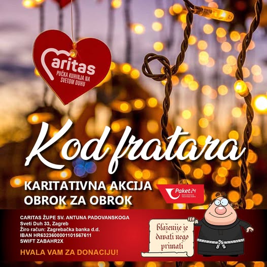 I ove godine franjevci na Svetom Duhu organiziraju dobro poznatu karitativnu akciju “Obrok za obrok” kojom podupiru rad njihove pučke kuhinje.