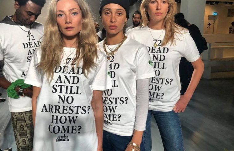 Na Tjednu mode u Londonu manekenke i aktivistice protestirale su jer još nije otkriveno zašto je došlo do kobnog požara u Grenfellu 2017. godine. Poslale su snažnu poruku noseći majice s natpisima “72 smrti, a i dalje bez uhićenja? Kako to?”