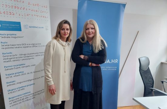 Generacija.hr - Udruga za promicanje medijske kulture, međugeneracijske solidarnosti i zaštite prava mladih, obitelji i umirovljenika provodi projekt “Jednake mogućnosti“ u partnerstvu sa Zakladom Čujem, vjerujem, vidim. Cilj projekta koji je započeo u veljači 2022.…