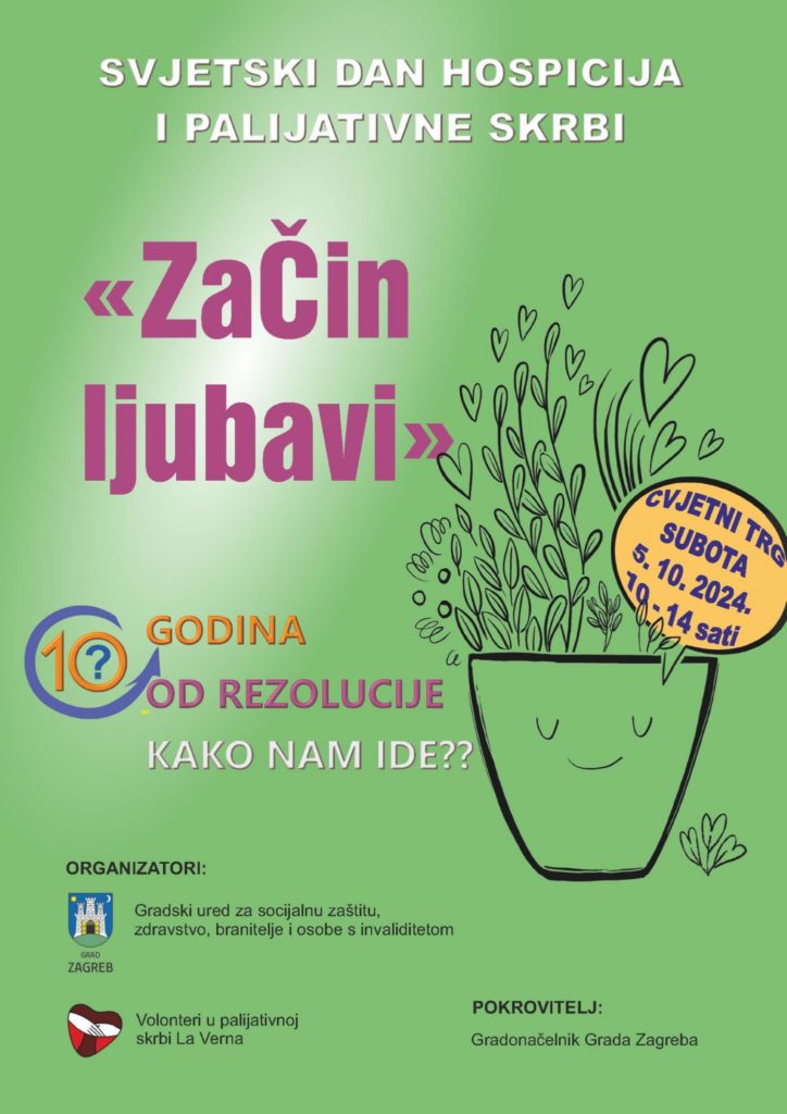 La Verna kroz pružanje podrške palijativnim bolesnicima i njihovim obiteljima na području grada Zagreba, ali i kroz brojne aktivnosti kojima nastoji unaprijediti razvoj palijativne skrbi u Hrvatskoj, posvećeno radi na jačanju palijativnog elementa te formule i poziva građane da se pridruže obilježavanju Svjetskog dana hospicija i palijativne skrbi na Cvjetnom trgu u Zagrebu, u subotu 5. listopada, od 10 do 14 sati i na taj način toj udruzi, njenim volonterima i svim sugrađanima koji trebaju palijativnu skrb iskažu svoju podršku.