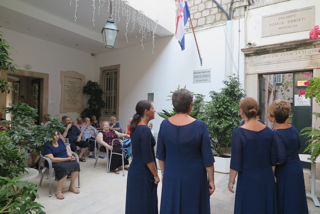 Korisnicama i korisnicima ovoga doma unutar zidina pjesmom su uljepšali ovu toplu ljetnu večer odvlačeći njihovu pozornost od teških misli i donoseći im radost pjesme, izvijestili su iz Dubrovačke biskupije.