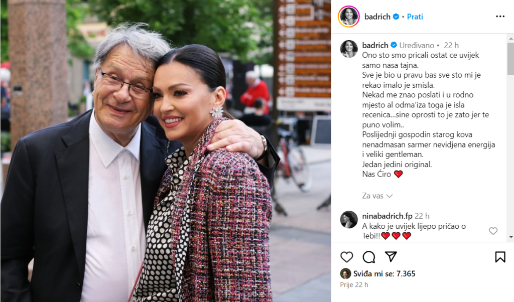 “Ono što smo pričali ostat će uvijek samo naša tajna. Sve je bio u pravu baš sve što mi je rekao imalo je smisla. Nekad me znao poslati i u rodno mjesto al odma’iza toga je išla rečenica…sine oprosti to je zato jer te puno volim”, započela je Nina na Instagramu.