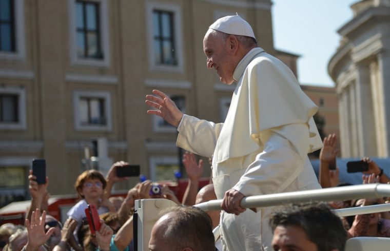 Nakon što se toga 13. ožujka u 19:05 nad Sikstinskom kapelom pojavio bijeli dim te nakon već opjevanih riječi kardinala protođakona, a bio je to kardinal Jean-Luis Tauran: „Annuntio vobis gaudium magnum: habemus Papam!“, i nakon što je odmah potom obznanio njegovo ime: „Eminentissimum ac reverendissimum dominum, dominum Georgium Marium, Sanctae Romanae Ecclesiae Cardinalem Bergoglio, qui sibi nomen imposuit Franciscum“ („Javljam vam veliku radost: imamo Papu! Preuzvišenoga i prepoštovanoga gospodina Jorgea Marija, kardinala svete Rimske Crkve Bergoglia, koji je sebi izabrao ime Franjo“), na Trgu sv. Petra u Vatikanu zavladala je velika radost i iščekivanje njegove pojave.